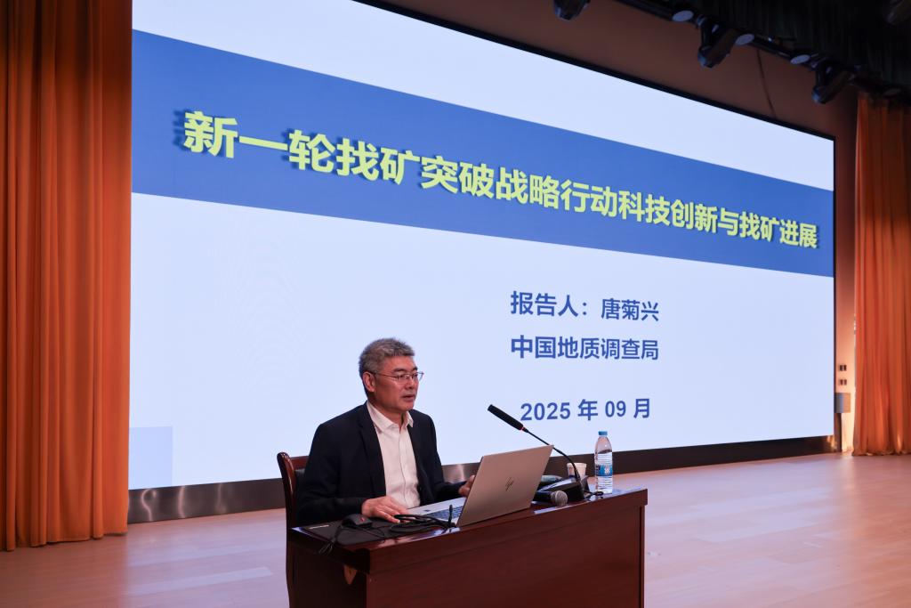 唐菊兴院士从我国矿产资源现状出发,结合“十五五”发展规划,系统阐述了国家发展过程中在战略性资源领域面临的挑战与突破路径;重点介绍了铜矿、铁矿等大宗战略性资源勘探的技术创新,如化探方法中指示性元素分析对深部矿床定位的重要作用。他还分享了科研育人心得,并与学员就技术问题和战略思路进行深入交流,报告会在热烈掌声中结束。