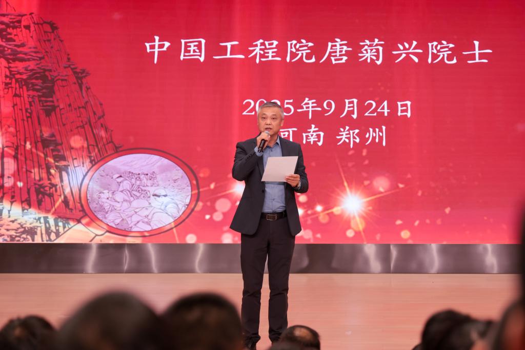 刘玉宾致辞,他代表学校对唐菊兴院士的到来表示热烈欢迎。并高度赞扬了唐菊兴院士在地质科学领域取得的卓越学术成就,以及在教书育人方面作出的杰出贡献,并号召全体学员学习他开拓创新、诲人不倦的崇高精神,为河南地质事业和学校高质量发展贡献智慧与力量。(通讯员:王英好 夏彬涵)